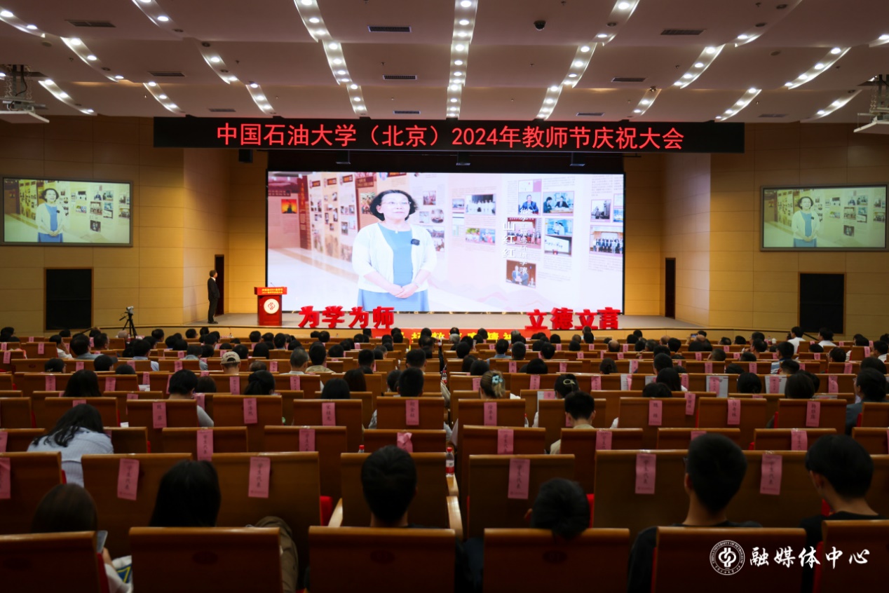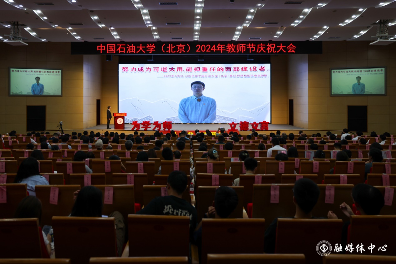 9月10日下午,beat365在线唯一官网(北京)2024年教师节庆祝大会在中油大厦三层报告厅隆重举行。校领导王同奇、金衍、鲍志东、韩克飞、文永红、刘植昌、张广清与受表彰教师代表、荣休教师代表、全体处级干部、全体新入职教师、一线教师代表和学生代表500余人欢聚一堂,共同见证中石大教师的光荣时刻,克拉玛依校区干部及师生代表在分会场通过线上参会。校长金衍主持庆祝大会。