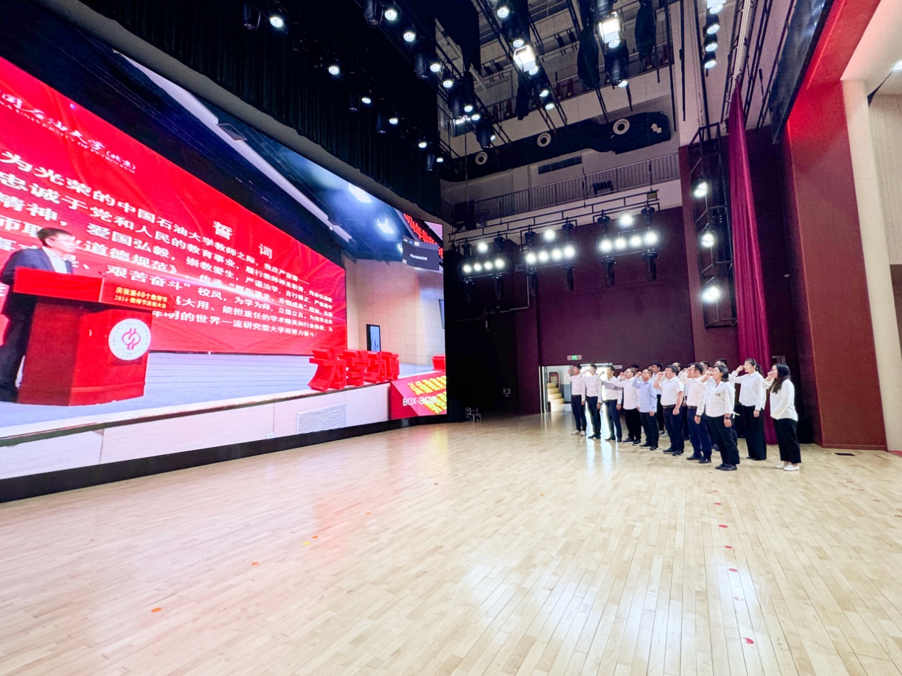 2024年,有80余名优秀教职工加盟中石大,为学校教师队伍注入了新鲜血液,在人事处处长、党委教师工作部部长、人才办公室主任唐旭教授的领誓下,2024年新入职教职工进行了庄严的入职宣誓,郑重承诺将传承弘扬教育家精神,为学校建成能源领域特色鲜明的世界一流研究型大学而努力奋斗!