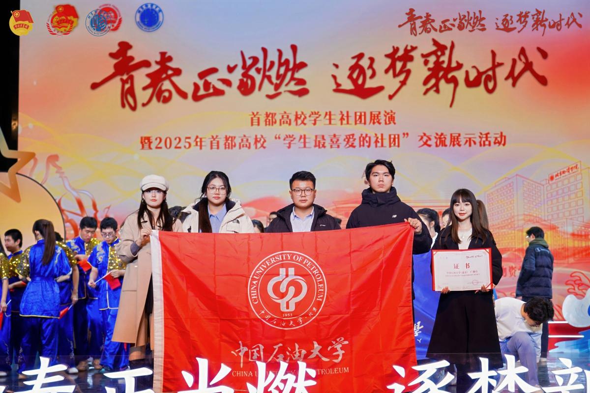 11月30日晚,由共青团北京市委员会、北京市委教育工委、北京市学生联合会、北京高校学生社团发展指导中心等单位联合举办的“青春正当燃·逐梦新时代”首都高校学生社团展演暨2025年首都高校“学生最喜爱的社团”交流展示活动在北京物资学院举行。共青团北京市委副书记王泰鹏、北京市委教育工委宣教处处长代兵、共青团北京市委大学中专工作部部长沈若萌以及相关单位负责同志和来自北京各高校的1200余名师生代表参加活动。活动现场发布了2025年首都高校“学生最喜爱的社团”名单,中石大思想政治类社团——beat365在线唯一官网(北京)广播台入选。截至目前,学校共有2个学生社团获该荣誉。