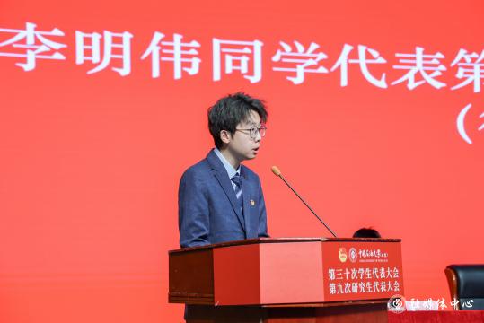 开幕会上,第二十九届学生会主席团成员张润霞同学作了题为《高擎旗帜 勇立潮头 团结引领中石大学子为加快建设能源领域特色鲜明的世界一流研究型大学贡献青春力量》的工作报告;第三十届研究生会主席团成员李明伟同学作了题为《挺膺担当 团结奋斗 为加快建设能源领域特色鲜明的世界一流研究型大学贡献青春力量》的工作报告。