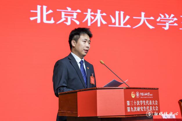 北京林业大学学生会执行主席王琰同学代表兄弟高校致辞,对大会的召开表示祝贺,并回顾了两校学生组织的深厚情谊。他表示,两校联合开展的“主题团日”“学习搭子”“单词打卡计划”等活动成效显著,期待未来将合作领域拓展至公益服务、社会实践、学术竞技等更多方面,共同服务青年成长成才。