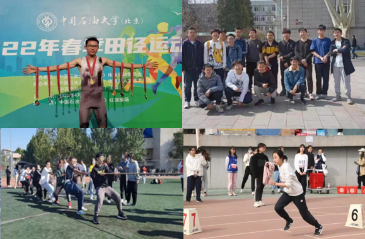于大衷作为国家双料运动员,在北京市和学校运动会中获得多项冠军头衔,获评体育优秀个人;5名同学在校运会、球类竞技等累计获奖10余项;纪念一二九徒步大会中石大最佳徒步铁人奖;拔河比赛;春季运动会;线上健身赛 班级同学参与率100%;组织并参与院内篮球联赛。
