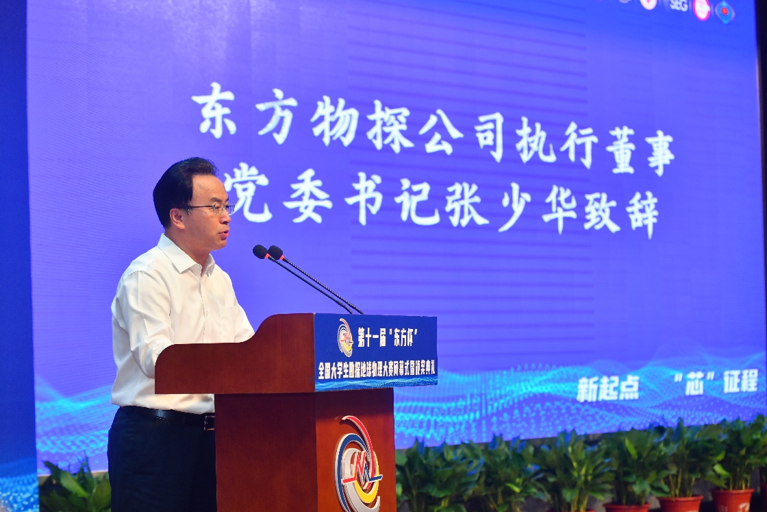 张少华在讲话中指出,大赛历经十一年发展,形成了研究生本科生组双层级、处理解释双赛道、勘探地球物理软件应用及开发双品牌的赛事格局,希望青年学子们成为物探科技的奋进者、开拓者、奉献者,在找油找气、保障国家能源安全的伟大事业中书写璀璨的人生华章。