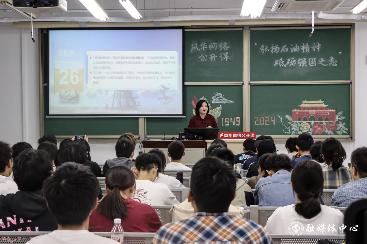 在大庆油田发现65周年之际,为引导学生进一步传承弘扬大庆精神(铁人精神),深刻领悟“爱国、创业、求实、奉献”的丰富内涵,9月26日下午,中石大举办风华网络公开课,马克思主义学院副教授李静静围绕“弘扬石油精神 砥砺强国之志”主题作了讲解。活动吸引了在校师生100余人现场听课,1万余人次线上参加。