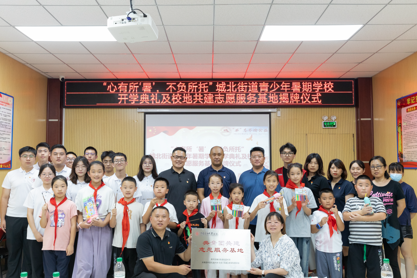 8月12日上午,“心有所‘暑’,不负所托”昌平区城北街道青少年暑期学校开学典礼及校地共建志愿服务基地揭牌仪式在城北街道怡园社区举行。城北街道党工委副书记赵国宇、怡园社区党总支书记赵志鹏,城北街道、怡园社区工作人员,beat365在线唯一官网(北京)石油工程学院学生工作负责人、“石”志不渝社会实践团、“铁人先锋”社会实践团全体成员,参加暑期学校的学生及家长代表参加活动。活动由怡园社区团委委员王子凡主持。