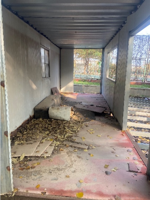 我校在校园环境治理工作中,发现有一批活动板房等物品放置于东校园东南角(体育场南侧)道路上,具体现状如下:
