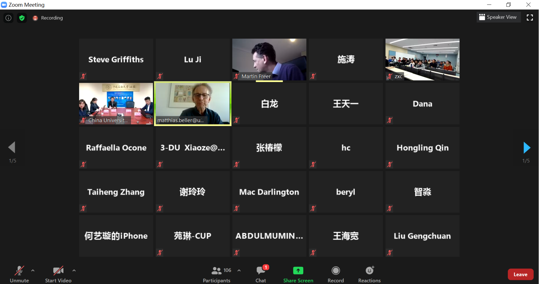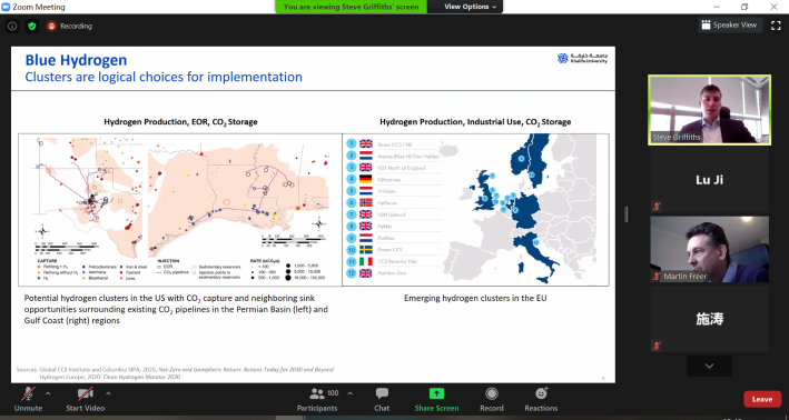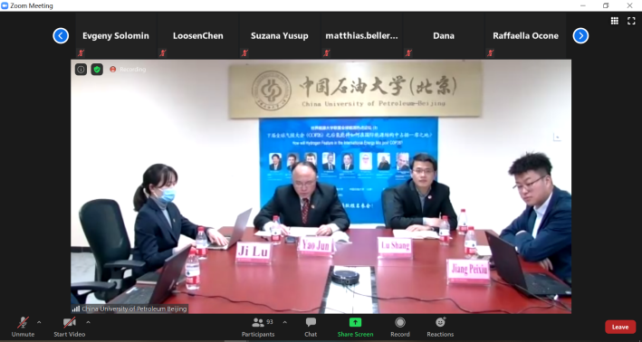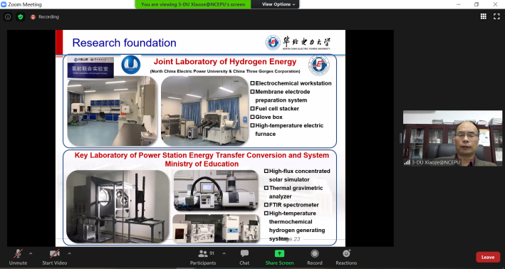 英国伯明翰大学能源研究院院长Martin Freer教授、阿联酋哈利法大学副校长Steve Griffiths教授、德国罗斯托克大学莱布尼茨催化研究所所长Matthias Beller教授、马来西亚国油大学生物燃料和生化研究中心负责人Suzana Yusup教授、俄罗斯南乌拉尔国立大学可替代能源国际科研项目组负责人Evgeny Solomin教授、英国伯明翰大学燃料电池与氢能研究中心Ahmad El-Kharouf博士、华北电力大学能源与动力工程学院院长杜小泽教授等先后作主旨报告。专家们分析了当下氢能发展的机遇与挑战,以及在工业领域脱碳运动中的应用前景;介绍了催化剂在氢燃料存储中的重要作用,生物质热化学转化制氢、碳基储能材料、氢基燃料等的最新研究进展;探讨了以氢能为动力的可再生能源计划;展望了氢能发展助推中国2060碳中和的愿景。会上,参会者与发言嘉宾积极互动交流,为进一步拓展高校间氢能国际合作提供了良好的契机。