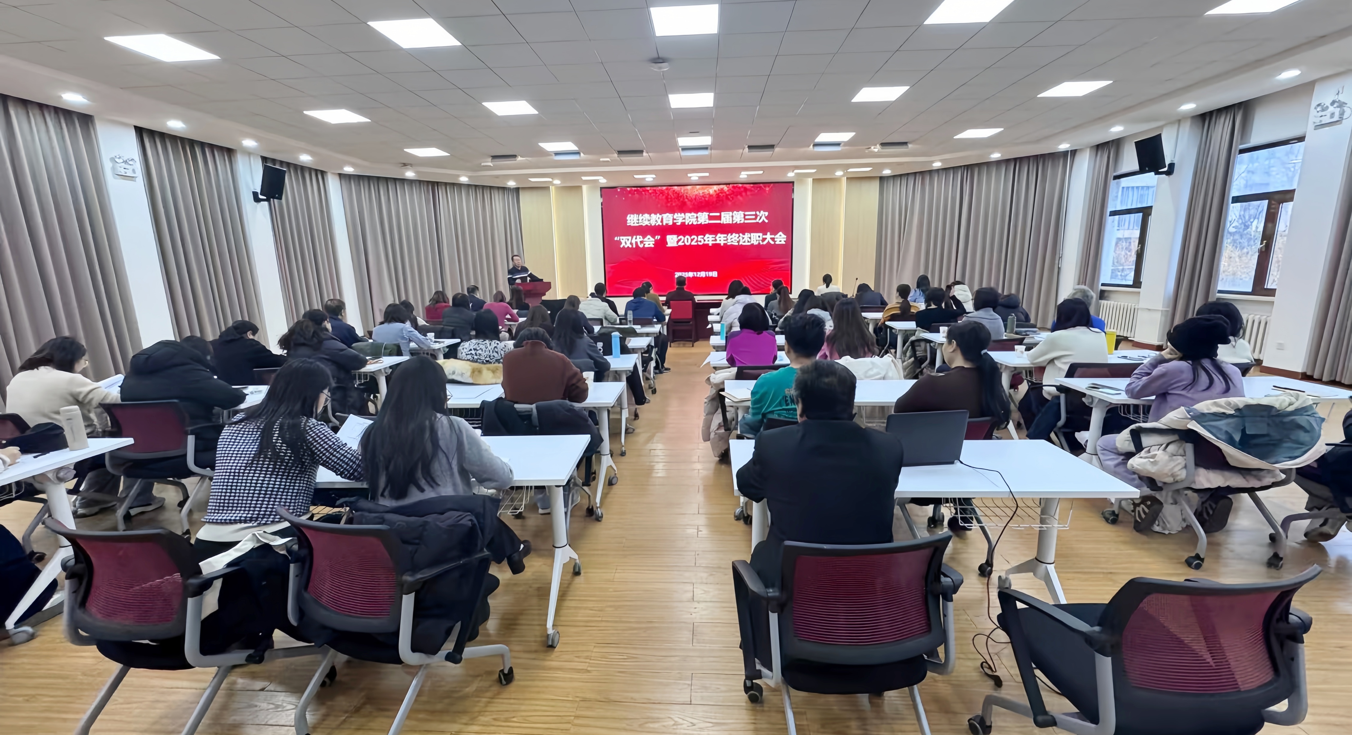 为系统总结2025年度工作成效,科学谋划2026年发展蓝图,激发全体教职工干事创业的内生动力,2025年12月19日,继续教育学院在东校园高端培训中心第二报告厅成功召开第二届第三次教职工代表大会与工会会员代表大会(“双代会”)暨年终述职大会。学院领导班子、各部门负责人与教职工55人齐聚,共商学院发展大计。