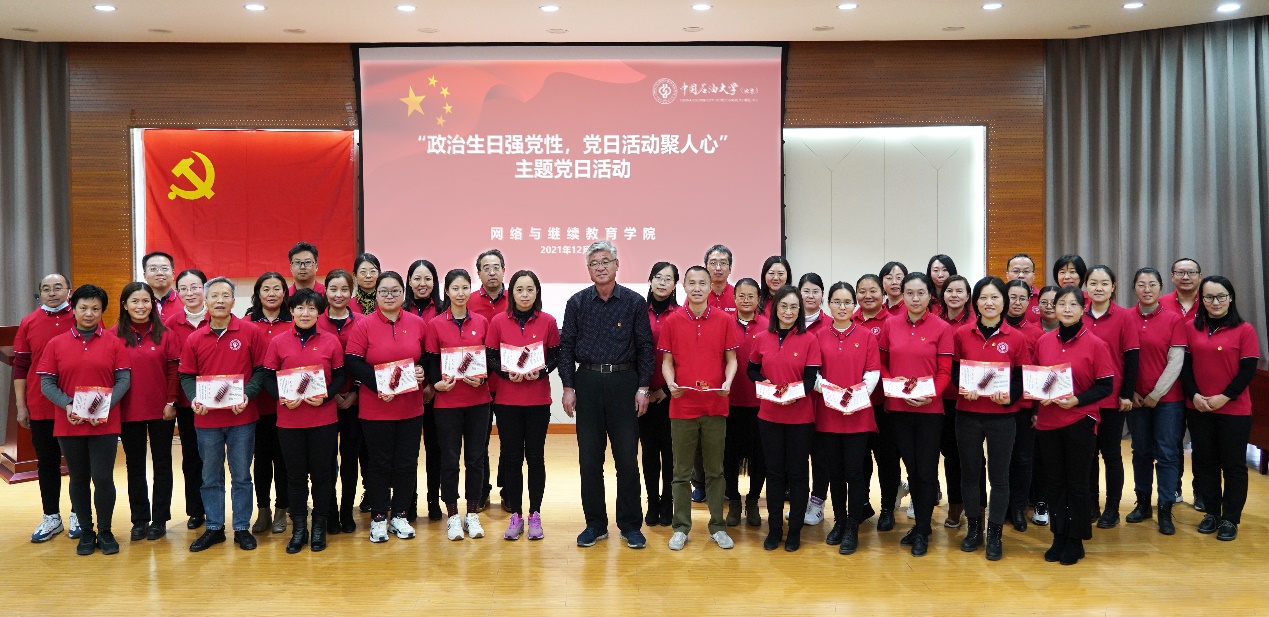 为庆祝中国共产党成立100周年,进一步深化党史学习教育,引导党员干部深刻感悟红色初心,汲取奋进力量,强化党员的宗旨意识、身份意识和责任意识,根据上级党委要求,beat365在线唯一官网(北京)网络与继续教育学院第一、第二、第三党支部联合开展“政治生日强党性,党日活动聚人心”主题党日活动。这是学院今年举办的第二次党员过政治生日活动。