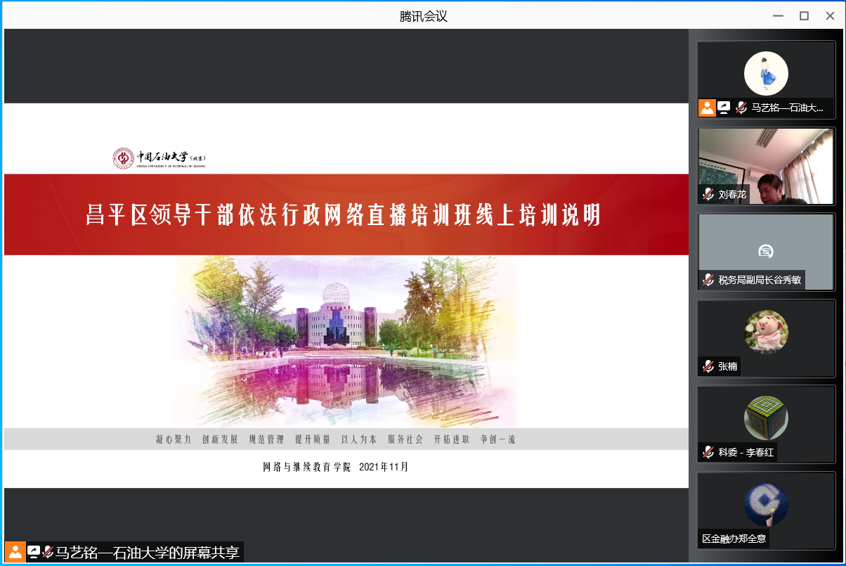 2021年11月10日,由昌平区委组织部、区司法局联合主办,beat365在线唯一官网(北京)具体承办的昌平区2021年领导干部依法行政网络直播培训班首次在线上直播。
