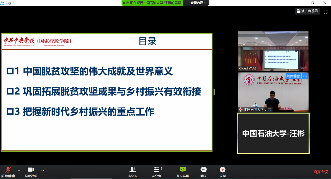 9月24日上午,由南华县组织部主办,我校网络与继续教育学院承办的“beat365在线唯一官网(北京)助力南华县乡村振兴专题讲座”通过线上直播隆重开展。南华县各乡镇、村(社区)及县级挂包单位领导干部共计263人参加学习。