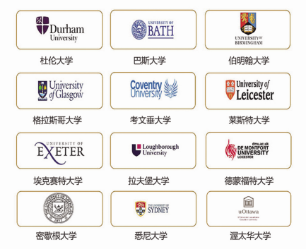 截止2020年,3+1项目已与全球13个国家110余所高校建立了升学合作,学生在校完成国内学业后,可根据自己的意愿及合作大学的入学要求,自主选择就读与我校签订正式协议的合作大学及合作专业。部分国外大学如下: