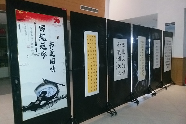 本次展览共展示硬笔作品、软笔作品各10幅,涵盖楷书、行书、隶书、草书等多种字体形式,内容涉及党的十九大报告、习近平总书记系列重要讲话、优秀古诗词等。展览吸引了众多师生观摩,他们在欣赏作品的同时,进一步增强了规范书写文字的意识,提高了审美水平和人文素养。