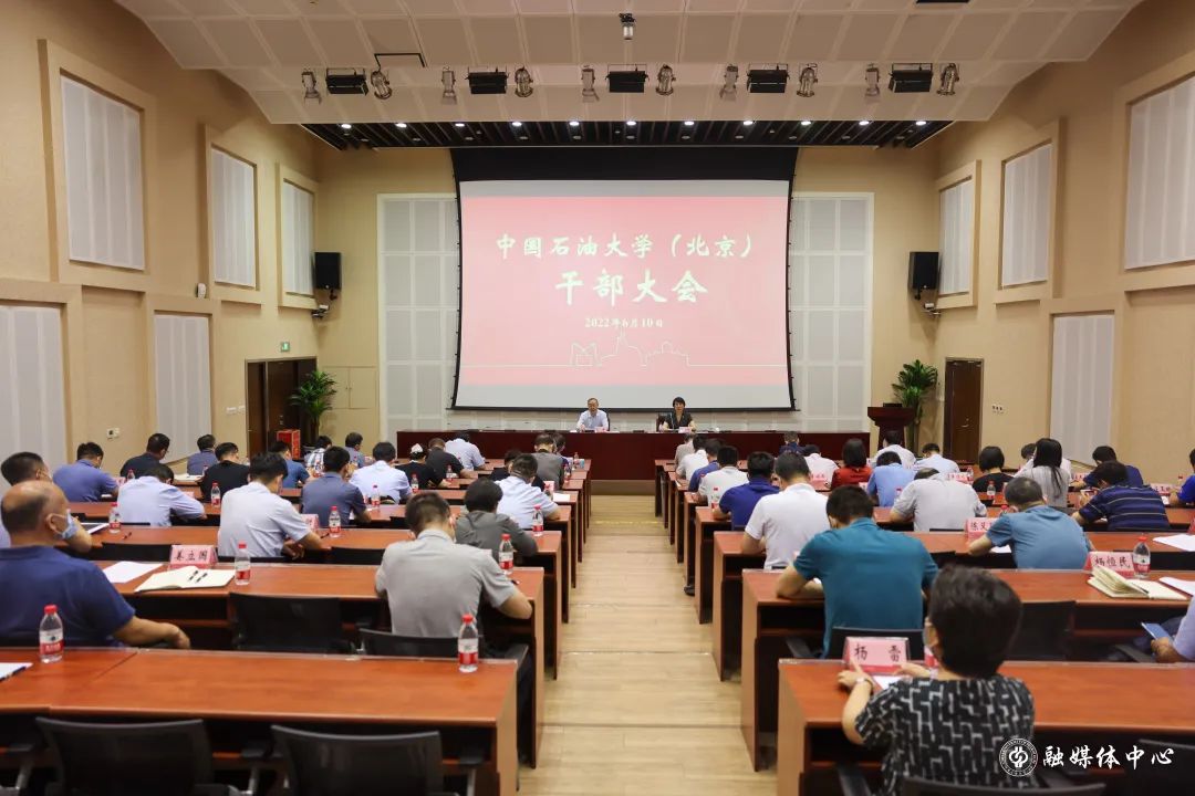 6月10日上午,beat365在线唯一官网(北京)召开干部大会,宣布教育部党组关于学校有关领导同志任免的决定。全体校领导、中层正职干部参加会议,克拉玛依校区全体处级以上干部通过视频连线参会。校长吴小林主持会议。