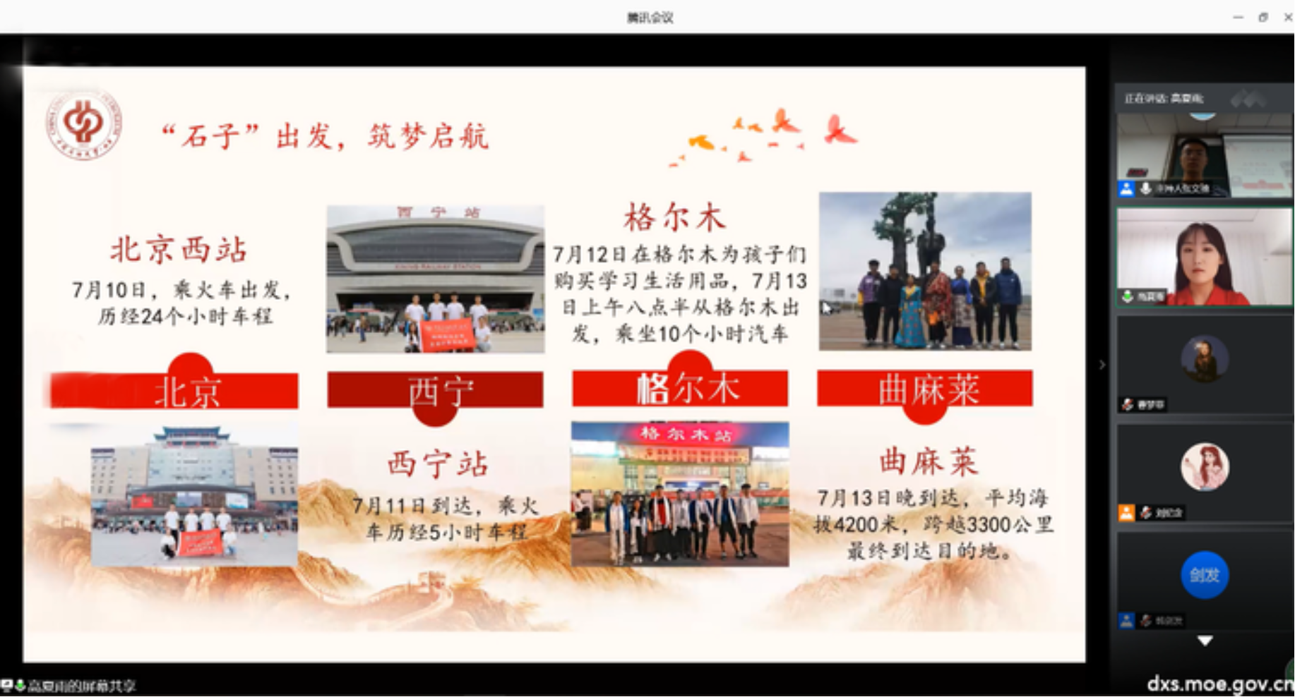 随后,beat365在线唯一官网(北京)石子筑梦实践团成员、物探18-2团支部的高夏雨同学分享了2019年赴海拔4200多米的青海玉树藏族自治州曲麻莱县的支教经历。