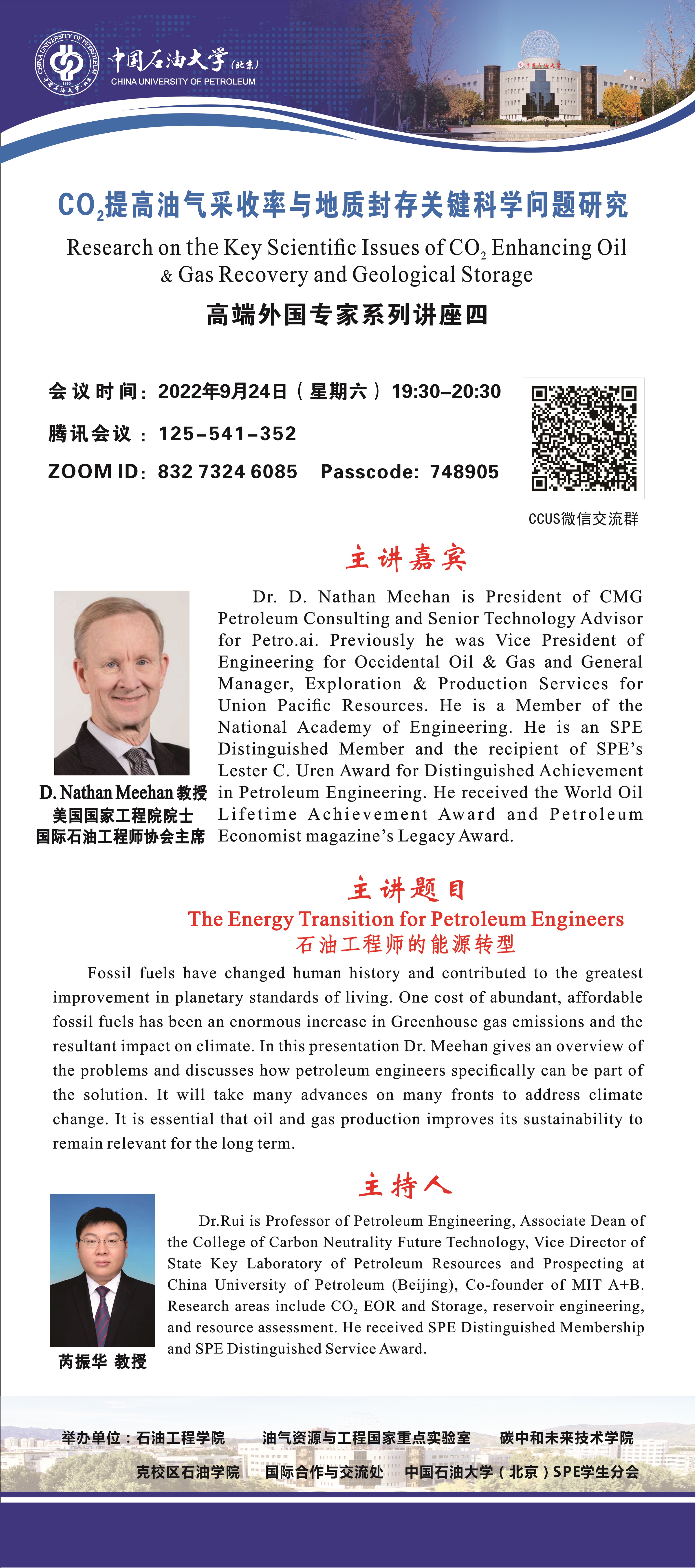 高端外国专家引进计划项目系列讲座四——二氧化碳提高油气采收率与地质封存关键科学问题研究