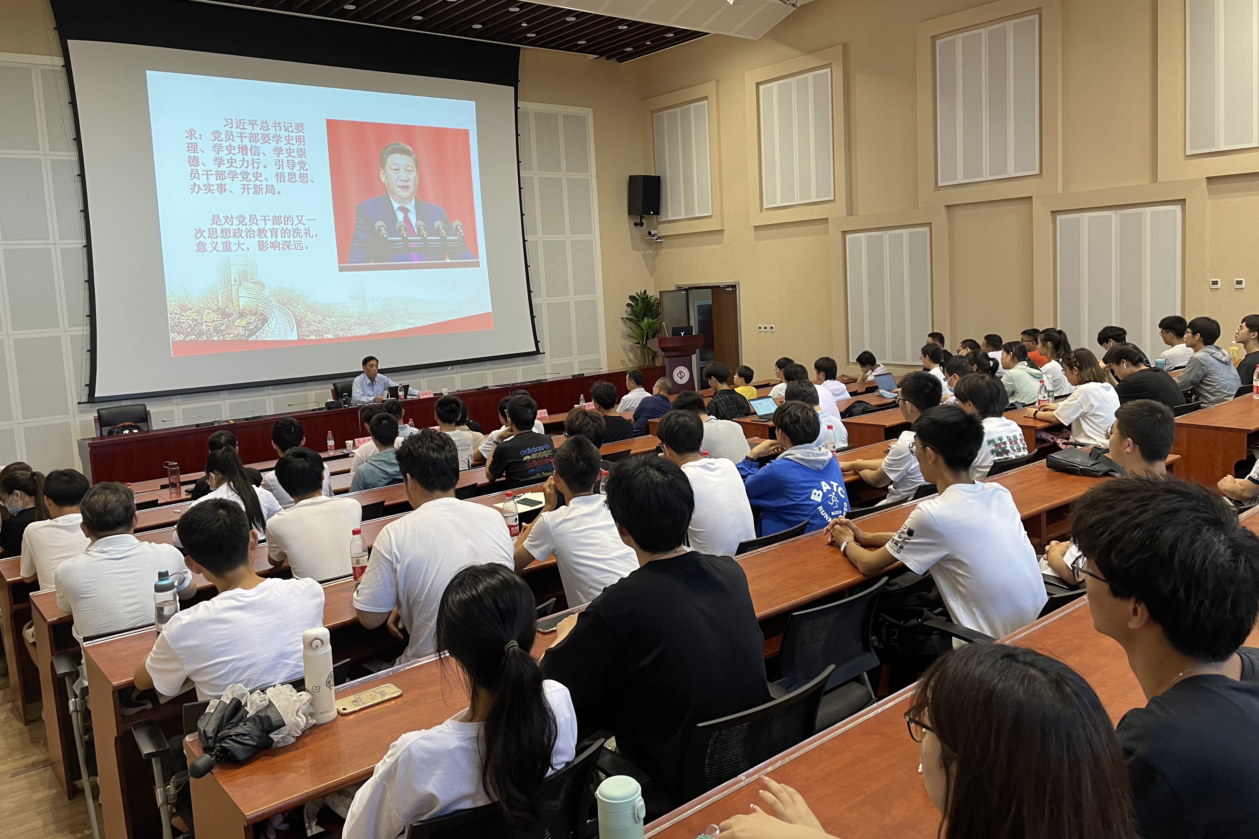 北京市老干部局原副局长、高级政工师马为平担任主讲,结合大量的图片、影像资料,生动讲述了马骏烈士爱国、救国、殉国的感人故事,诠释了以马骏烈士为代表的优秀中国共产党人、革命先烈的爱国主义精神及大无畏的革命精神。他激励青年一代传承红色基因、坚定理想信念、牢记初心使命、矢志奋斗拼搏,掌握学识本领,到祖国最需要的地方建功立业。