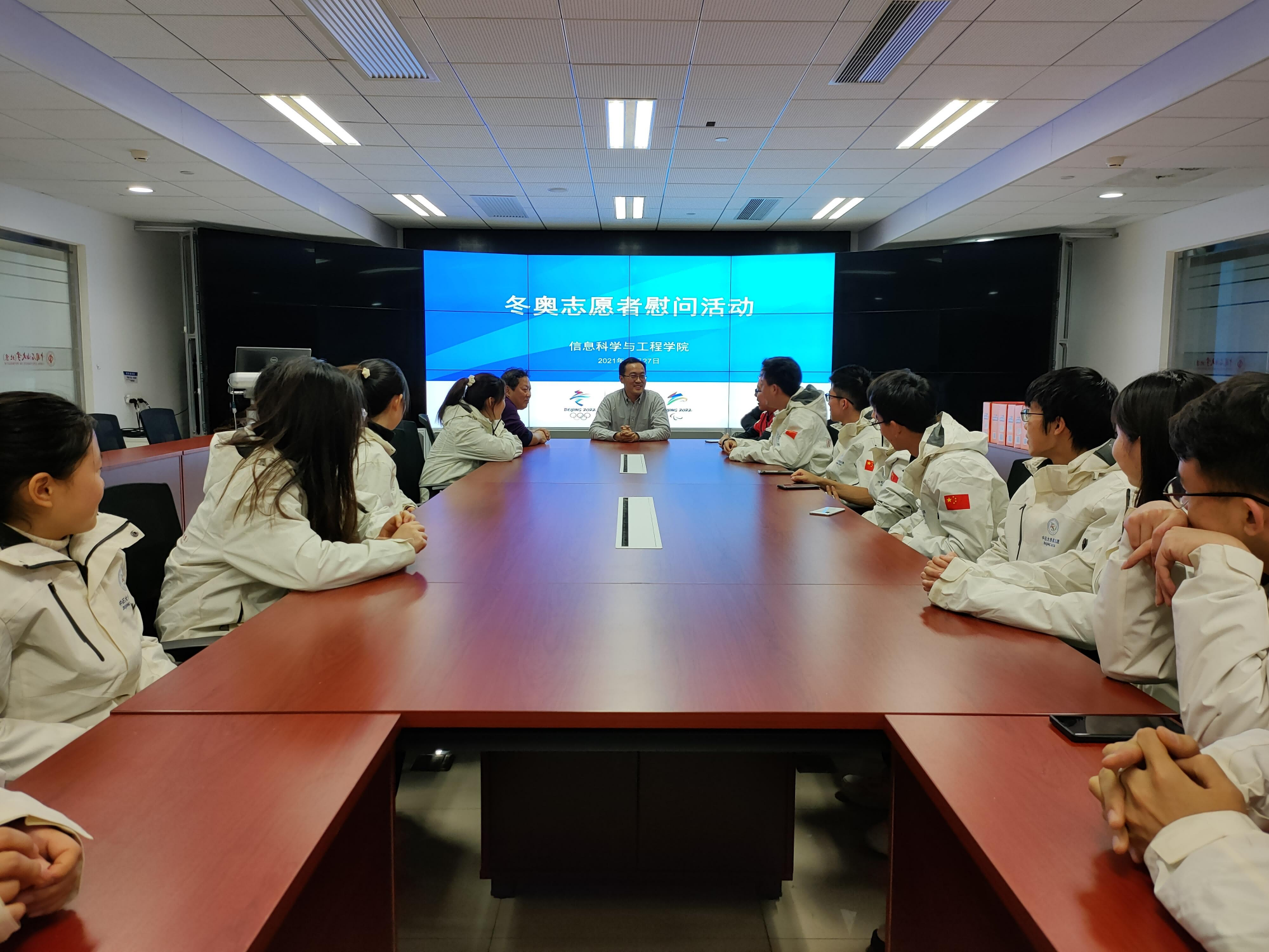 冰雪激情,共赴冬奥,在冬奥会即将召开之际,12月27日,中石大信息科学与工程学院组织开展慰问冬奥志愿者活动,院长刘伟峰、副院长吴卫江,党委副书记于迎辉及学院20名冬奥会和冬残奥会志愿者参加了活动。