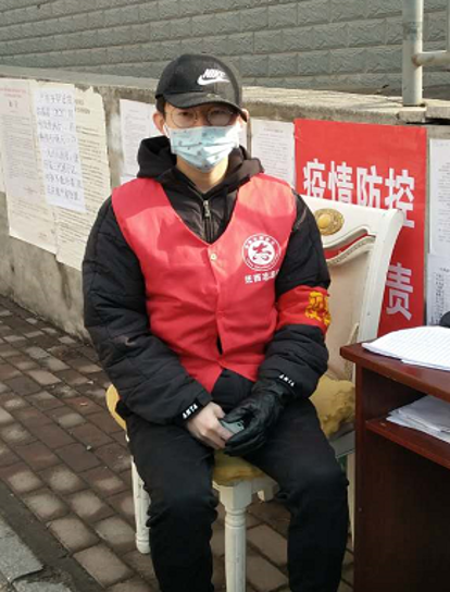 “每一个出入小区的居民都要排查登记,记录体温。维护小区不受病毒的侵袭责任重大。多数居民都很配合,还有暖心的居民会说一句辛苦了,这对我来说是最大的鼓励。在这个特殊时期,一点儿都不能松懈。亲身体验后才知道,每天在外负责检查的防疫人员有多么辛苦,更不用说奋战在一线的医护人员了。他们是在用自己的生命保护我们!我会继续参加志愿者工作,为国家尽一份微薄之力。”赵阳说。