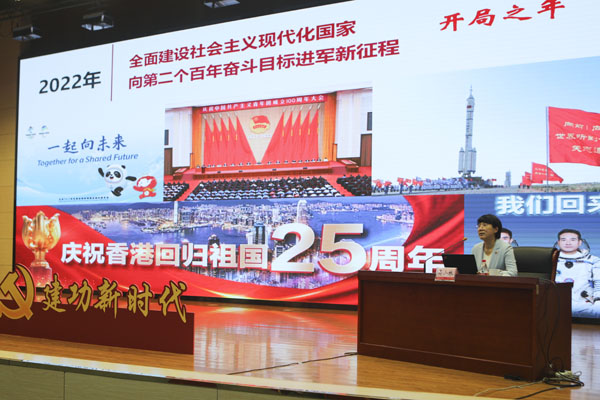 地球物理学院党委副书记陆杭波,马克思主义学院教师余燕飞、张冠军、康建伟、信息科学与工程学院团委书记代莉莎分别以《正确理解“新时代”的特征及其含义》、《百年大党与中国式现代化道路》、《中国共产党的纲领》、《中国共产党的“大历史观”》、《明确党员条件,严格履行入党手续》为题先后作了专题报告。