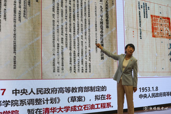 吴小林以“新时代青年的理想、本领、使命是什么”为切入点,以“建国初期、艰苦求索、恢复发展、进入新时代”四个阶段为时间轴,从“使命、力量、未来”三个篇章,全面回顾了学校办学69年的光辉历程,深情讲述了老一辈石油人艰苦创业、矢志奋斗的报国情怀,共同感悟了一代代中石大人在不同历史时期的使命与担当,介绍了学校办学理念、定位目标和人才培养的新坐标与新方向。