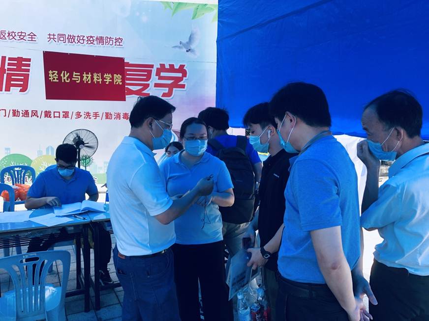 根据学校《关于2020年春季学期学生返校工作安排的通知》(顺职院发〔2020〕21号),6月20日至30日,太阳官网毕业班学生分十批返校办理毕业离校相关事宜。20日当天,学校迎来了来自轻化与材料学院、医药卫生学院的首批毕业班学生共500多人。学校领导夏伟、刘毓、谭谦章到现场视察,了解毕业生返校工作情况。校党政办、组织人事处、学生工作部、后勤管理处、轻化与材料学院、医药卫生学院等相关部门负责人参加了活动。