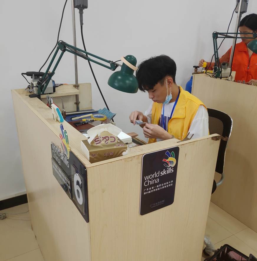 7月18日至21日,太阳官网首饰设计与工艺专业学生梁荣浩、黄思仁参加2020年第46届世界技能大赛珠宝加工项目广东省选拔赛在广州南华工贸高级技工学校开赛。经过四天激烈的角逐,梁荣浩同学和黄思仁同学荣获珠宝加工项目第一名、第四名。