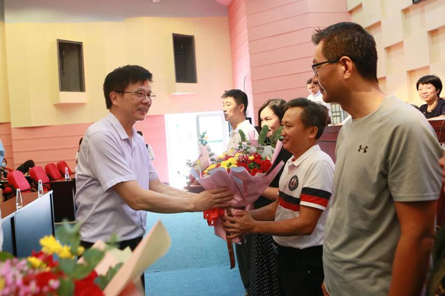 刘毓副书记、副校长宣读了《关于表彰学校2020年优秀教师、优秀教育工作者的决定》。大会现场对获得学校2020年优秀教师、优秀教育工作者、获区级以上表彰的优秀教师以及今年满30年教龄的老师进行了表彰,学校领导分别为获奖者进行了颁奖。