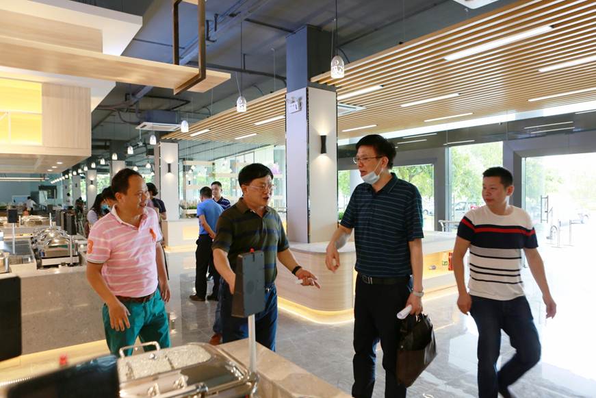 学校党委书记李先祥(右二)、校长夏伟(左二)一行对学校食堂现场检查