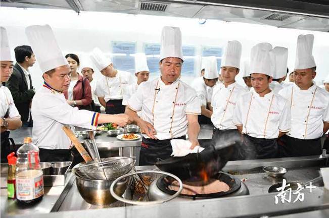 学员在粤菜大师的指导下学习各项烹饪技巧