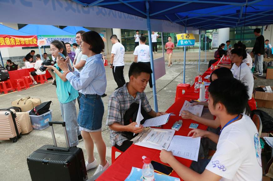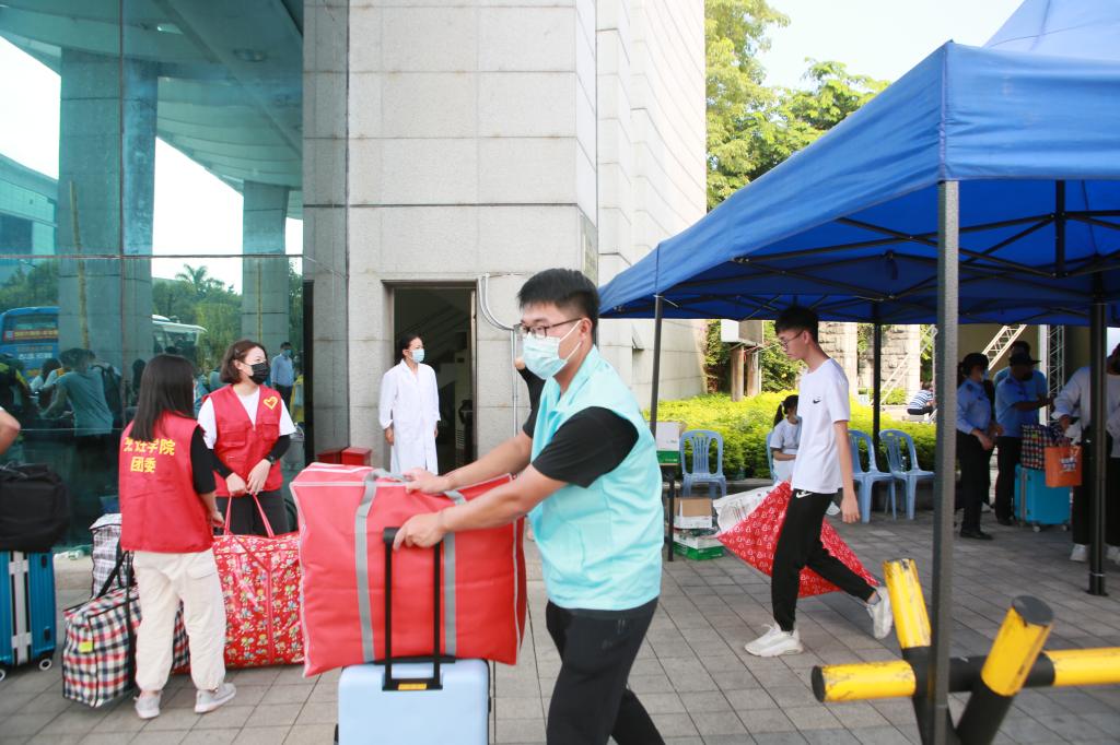 结合疫情防控常态化要求,学校提前对重点场所进行了消毒清洁工作,设立了专门的核查和测温点;要求每一位入校的新生都要佩戴口罩,提供录取通知书和健康通行证明,检验合格后方可进入校园。各二级学院按照合理分散、就近便利的原则,在新生宿舍楼下安排集散中心及服务站,安排专车接送、志愿者“点对点”服务,减少人员聚集带来的风险。“今年家长不能陪伴孩子走进校园,他们可能会比较担心。我们志愿者会提供更多的帮助,让新生感受到顺职大家庭的温暖。”