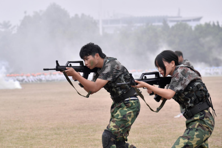 军训总结大会上,2020级新生进行了军训分列式及花样表演。各二级学院方队口号洪亮、步伐整齐、英姿勃发地依次经过主席台接受检阅,短棍术、匕首术、擒敌拳、应急棍、反恐战术及花样队方队分别进行了特色表演。新生们目光坚定,身姿挺拔,洋溢着青春的活力,展现出顺职学子积极向上、意气风发的精神风貌。