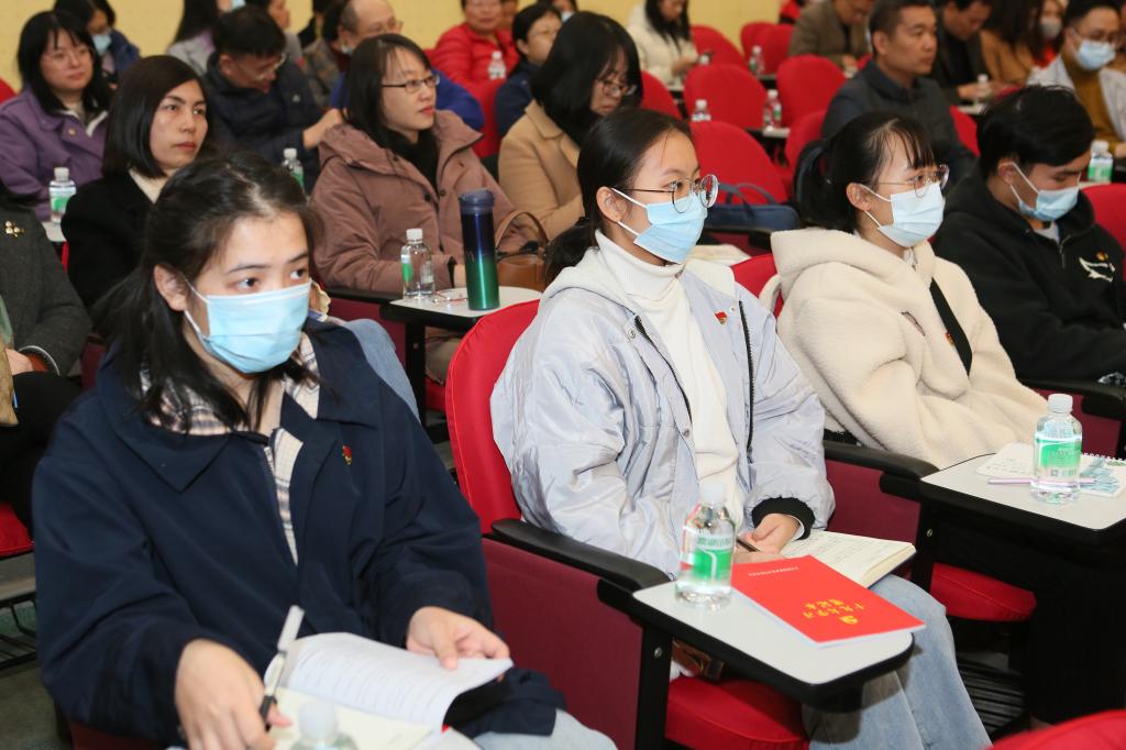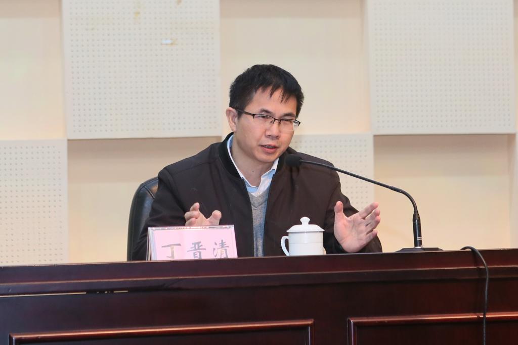 12月16日,太阳官网在学术报告厅举行党的十九届五中全会精神宣讲报告会,邀请广东省社会科学院党组成员、副院长丁晋清作“民族复兴征程上的里程碑——解读党的十九届五中全会精神”专题辅导报告。学校党政领导班子成员,全体教职工和学生代表参加了报告会。报告会由学校党委委员、宣传部长汤恺主持。