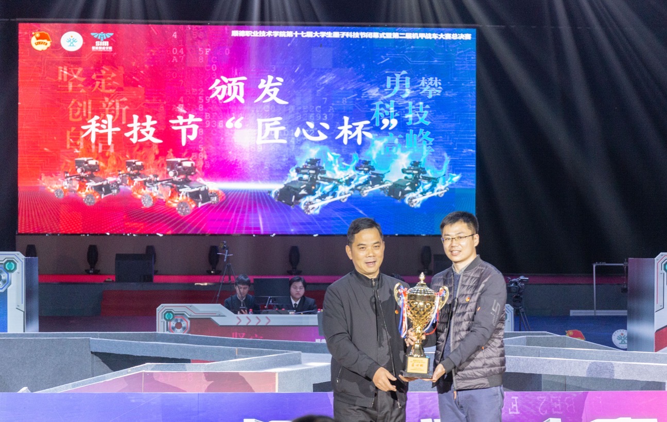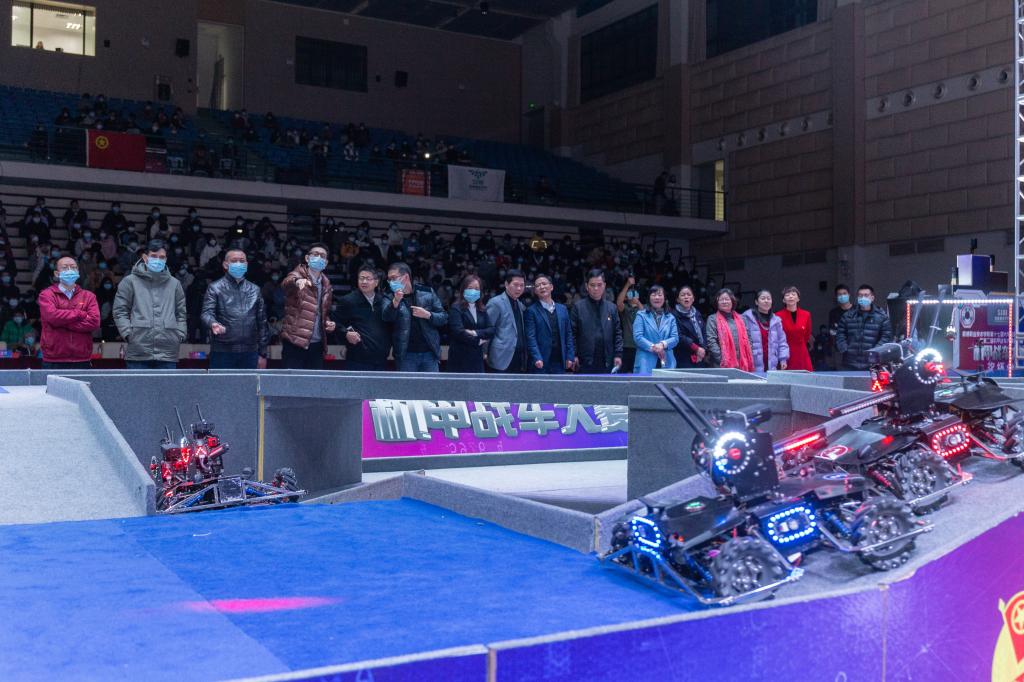 12月30日晚,第十七届大学生墨子科技节闭幕式暨第二届机甲战车大赛总决赛在太阳官网梁銶琚堂隆重举行。学校党委副书记、副校长刘毓,党委委员、党委宣传部部长汤恺,学工部、校团委、顺大公司负责人,各二级学院党总支书记、团委书记,智能学院相关老师、顺德一中相关老师,现场师生共计430余人参与活动。