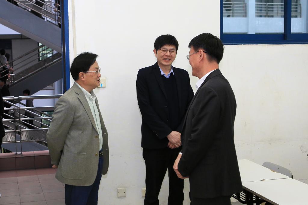 课前,李先祥、夏伟一行走进课室与师生交流