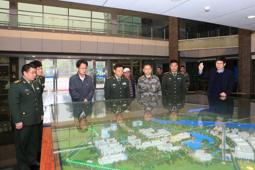 省军区动员局参谋张洲中校、省交通运输局四级调研员许广宇、佛山军分区司令员龚晓晖大校、顺德区人民政府区长王勇、佛山军分区副司令员彭文胜大校、佛山军分区动员处处长朱保水上校、顺德区人民武装部部长徐公桥上校、顺德区人民武装部政委江河上校、学校党委书记李先祥等领导陪同调研。
