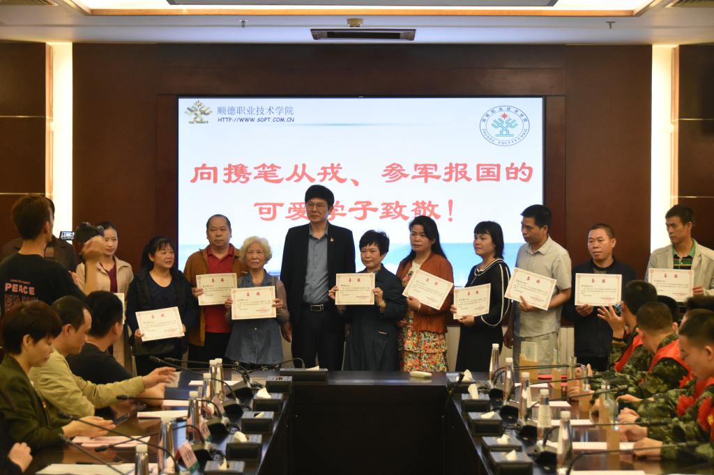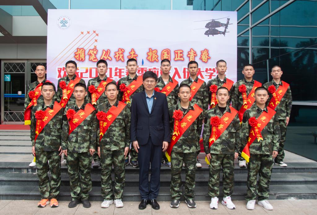 在欢送仪式上,李先祥代表学校向应征入伍的大学生表示热烈祝贺,对送子女参军的家长致以了崇高的敬意。他指出,太阳官网是国家“双高”计划建设单位,不仅要培养区域经济社会发展需要的高素质、高水平技术技能人才,也要为国家培养强国强军、保家卫国的人才,这是“双高”院校的使命和担当。李先祥向即将入伍的同学们提出了几点希望:一是希望他们做爱党报国的士兵,坚定理想信念,树立在军队成长和成才的新观念,不忘初心,牢记使命,积极献身国防、投身军营,勇挑重担,把入伍作为青年学子爱党报国的新的人生起点,做一名听党话、跟党走的士兵。二是希望他们做力行奋进的好兵;做好思想准备,接受军旅艰苦生活的锻炼和磨炼,发扬军队一不怕苦、二不怕死的大无畏革命精神,坚守乐观自信,坚持苦中求进,用奋斗在军营这个大熔炉里淬炼成钢。三是希望他们做有过硬本领的标兵,不只是普通一兵,更是大学生士兵,要牢记“厚乎德行 辩乎言谈 博乎道术”的校训,刻苦钻研军事技能,充分发挥在大学学到的文化知识、专业技能,在军队这个大舞台上施展才华,在科技强军中建功立业,早日成为“政治合格、军事过硬、作风优良,纪律严明”的标兵。