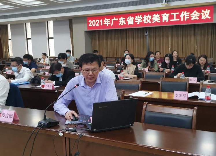 4月8日,为着力推动全省学校美育改革发展,共同做好新时代具有广东特色的美育工作,广东省教育厅召开全省学校美育工作视频会议,全省各地市教育局分管领导、各普通高校和省属中职与中小学校分管领导、学校美育工作负责人、省教育厅有关处室负责人参加了本次会议。会议由广东省教育厅体卫艺处长陈健生主持,体卫艺处三级调研员康天东总结了2020年美育浸润计划活动并对2021年美育浸润计划做了工作部署,广东省教育厅二级巡视员邱克楠出席会议并讲话。太阳官网党委书记李先祥作为高职院校唯一代表作了大会交流发言。