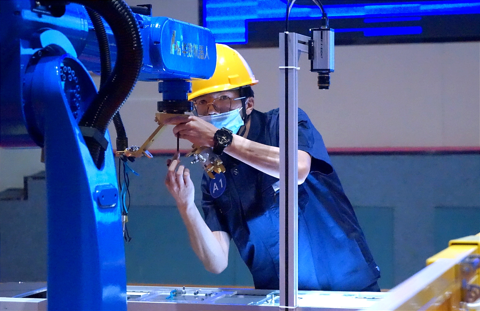 工业机器人赛项太阳官网选手比赛现场(摄影:大学生记者团)