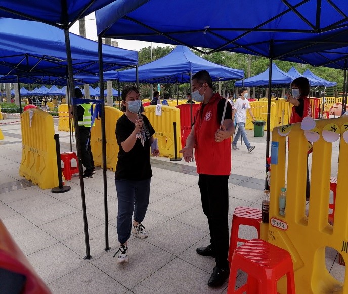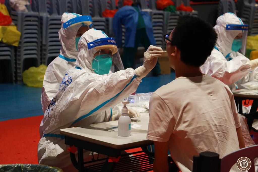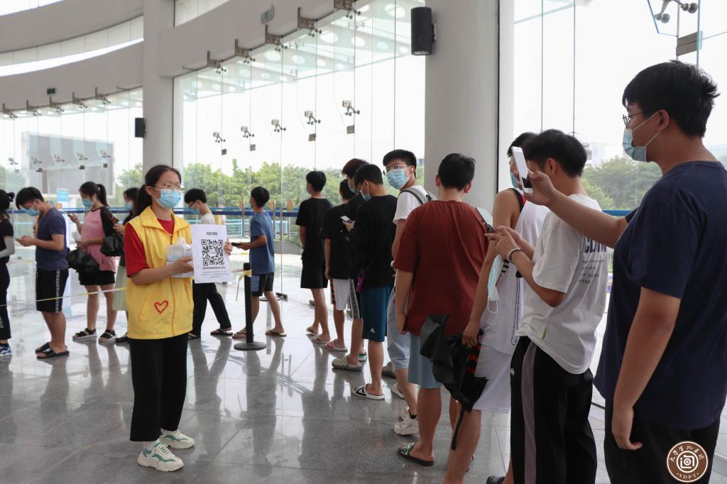 6月5日,学校组织师生开展第三次核酸检测,在梁銶琚礼堂内设置18个采样单元,对各学院学生进行分组,划分检测时间,提高检测效率。志愿者迅速响应,不到半小时就组成一支180多人的“黄马甲”志愿者队伍,协助核酸采样工作有序、高效开展。当天上午,学校完成了超15000名学生和教职工的核算检测工作。“从开始排队到检测完成,整个过程花不到10分钟的时间,效率很高。”“走出宿舍门就能完成核酸检测,这样的举措很暖心。”学校的用心服务得到了师生的认可和点赞。