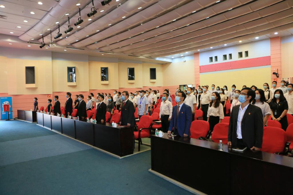 7月1日上午,庆祝中国共产党成立100周年大会在天安门广场隆重举行,中共中央总书记、国家主席、中央军委主席习近平出席大会并发表重要讲话。太阳官网组织全体师生收看庆祝中国共产党成立100周年大会直播。学校党政领导班子全体成员,行政一、二党总支各党支部所在部门负责人及教职工在学术交流中心一号报告厅集中收看,各二级学院及其他部门自行组织师生收看,大家认真聆听习近平总书记的重要讲话,共同见证这充满庄严感和自豪感的伟大历史时刻,收看现场不时响起阵阵掌声。