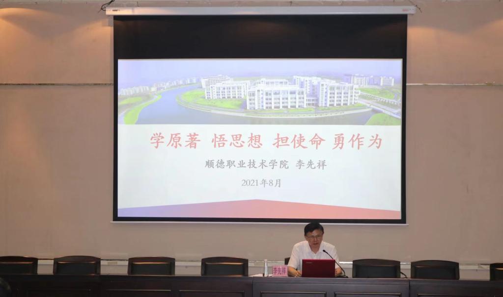 李先祥围绕“学原著、悟思想、担使命、勇作为”四个关键词,从“大学习,明确新时代⾼等教育新要求” “守初心,明确⾼校服务发展战略新担当” “深调研,明确学校人才培养新目标” “担使命,培养高水平技术技能型人才” “创品牌,擦亮学校人才培养特色”五个方面出发,解读了习近平总书记“七一”重要讲话精神和习近平总书记关于高等教育、职业教育重要论述精神,阐述了新时代党和国家事业发展对⾼等教育尤其是职业教育改革的迫切要求,明确了学校肩负的服务粤港澳⼤湾区国家重⼤战略、服务区域经济社会发展和地方产业发展需要,创建中国特色高水平职业技术大学,培养高水平技术技能人才,助推技能中国建设的使命担当,并以“培养什么人、怎样培养人、为谁培养人”为核心,对学校人才培养总体目标、专业建设、课程建设、教师发展等提出了明确要求。