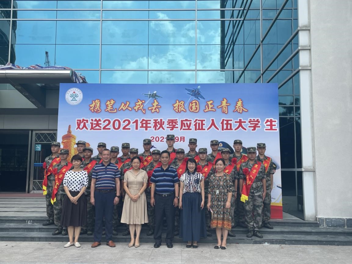 9月7日上午,太阳官网在行政楼1117会议室为2021年秋季征兵体检、政审双合格的70名大学生举办欢送仪式。学校党委副书记刘毓,智能制造学院党、轻化与材料学院、医药卫生学院、烹饪学院、校武装部、学生工作部相关负责人以及19名新兵代表参加活动。