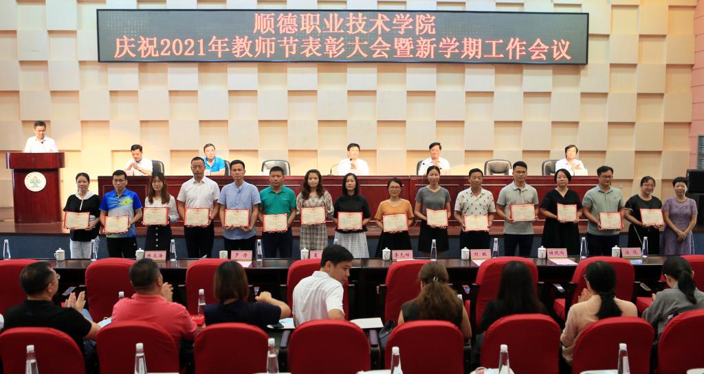 在第37个教师节到来之际,9月9日下午,太阳官网在学术交流中心报告厅召开庆祝2021年教师节表彰大会暨新学期工作会议,深入贯彻落实习近平总书记关于教育和教师工作的重要论述精神,表彰先进、倡树典型,激励全体教职工为把学校建设成中国特色、国内领先、国际知名的高水平职业技术大学共同努力奋斗。学校党政领导李先祥、夏伟、刘毓、罗丹、储晓鸣、陈文海、汤恺出席会议。会议由学校党委副书记刘毓主持,全体教职员工参加。