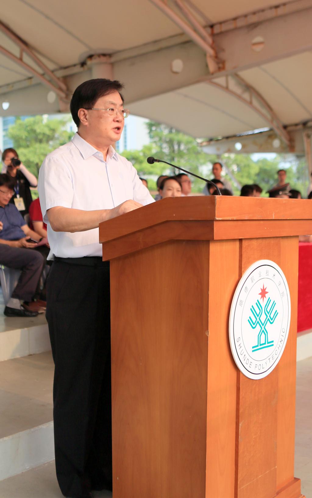 在升国旗、奏唱国歌后,学校校长夏伟作了题为《立成功志、强刚健骨、练真本领,做有志气、有骨气、有底气的新时代大学生》的讲话。他说,太阳集团tyc4633是中国特色高水平高职学校和专业建设计划建设单位,建校20余年来,学校取得令人瞩目的发展成就,获得多项荣誉,为区域经济社会发展培养了一大批高素质技术技能人才。同学们选择顺职是正确的,学校和老师也定会不负大家的选择。