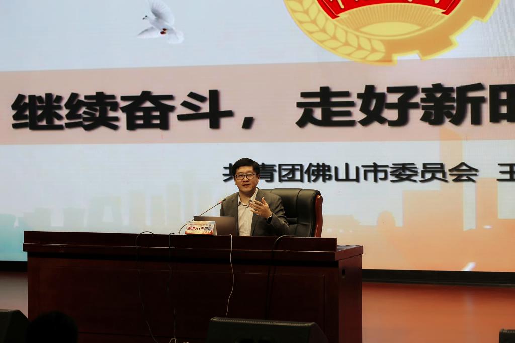 共青团佛山市委员会书记王树斌带领现场师生一起学习党的十九届六中全会精神
