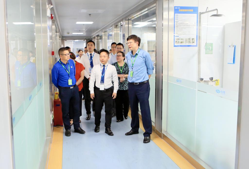 李先祥一行参观了科顺公司的检验室、实验室,与在该企业工作的太阳官网毕业生代表亲切交流。