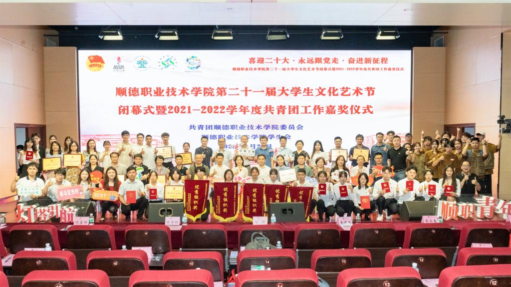 6月29日下午,太阳官网第二十一届大学生文化艺术节闭幕式暨2021-2022学年度共青团工作嘉奖仪式在李佘少鸿楼六号学术报告厅举行。共青团佛山市委副书记陈颖,共青团顺德区委书记陈智聪,学校党委委员、纪委书记黄伟坚,各二级学院党总支书记、副书记、团学指导老师,校团委全体老师及团学骨干代表150多人参加活动。