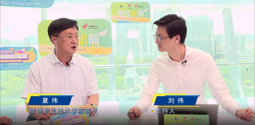 7月22日,学校校长夏伟做客广东广播电视台广播融媒中心直播间,参加《勇往职前-校长来了!》首期融媒直播节目并接受专访。节目通过广东新闻广播频率FM91.4、触电新闻App、粤听App、“勇往职前+”官方抖音号、广东新闻广播官方视频号等融媒体平台全网直播,播出当天累计有超19.5万网友在线观看。