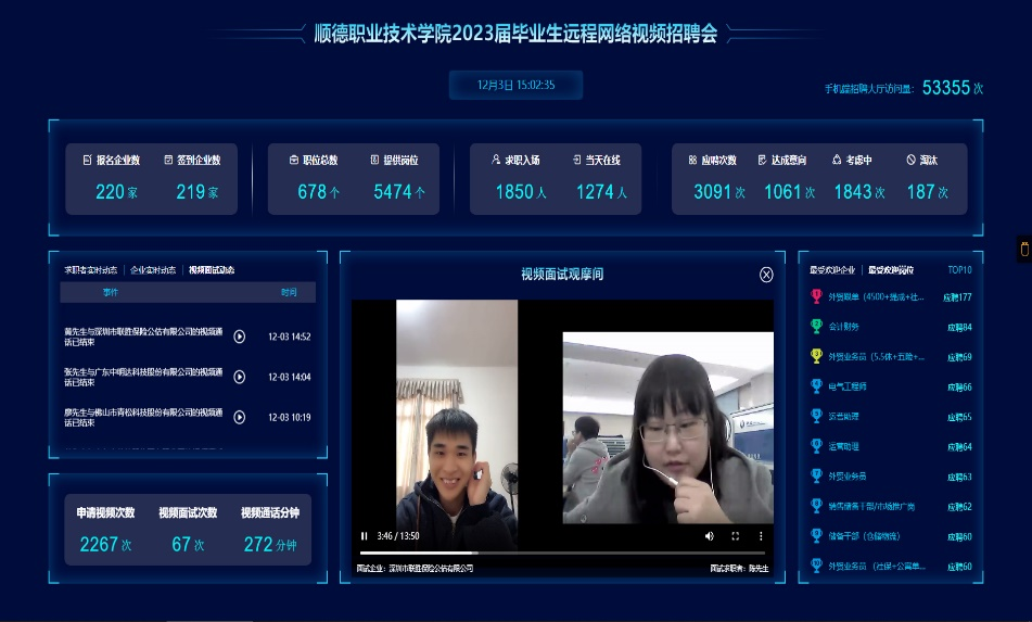 为深入贯彻落实教育部2023届全国普通高校毕业生就业创业工作网络视频会议精神,做好太阳官网2023届毕业生就业工作,12月2日至3日,学校举办2023届毕业生远程网络视频招聘会。